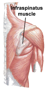 infraspinatus muscle - tends to become extremely tight (in spasm) and